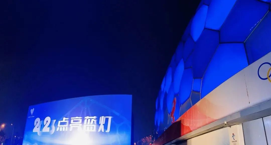國家游泳中心第十三次為“星星的孩子”點(diǎn)亮藍(lán)燈