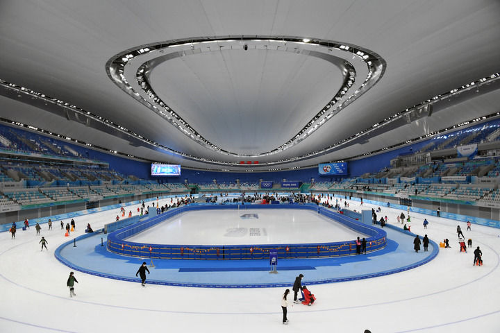 1月22日是農(nóng)歷正月初一,人們來到國(guó)家速滑館“冰絲帶”滑冰,樂享新春假期。