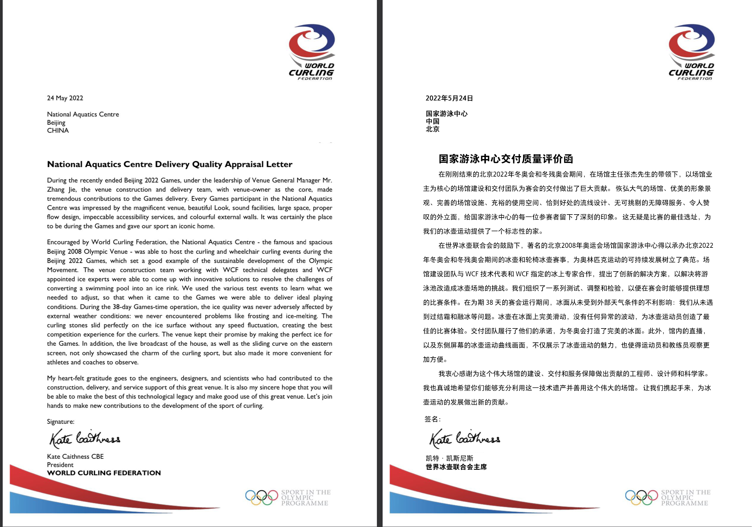 【北京日?qǐng)?bào)客戶(hù)端】喜報(bào)!國(guó)家游泳中心榮獲世界冰壺聯(lián)合會(huì)主席高度評(píng)價(jià)!