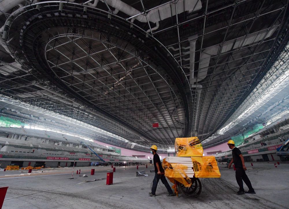 據(jù)宋家峰介紹,冰絲帶在2019年完成了場(chǎng)館的封閉封圍,簡(jiǎn)單說就是室外的玻璃幕墻和屋頂建設(shè)完成。今年的主要工程是機(jī)電安裝、室內(nèi)裝修以及最重要的制冰工程。