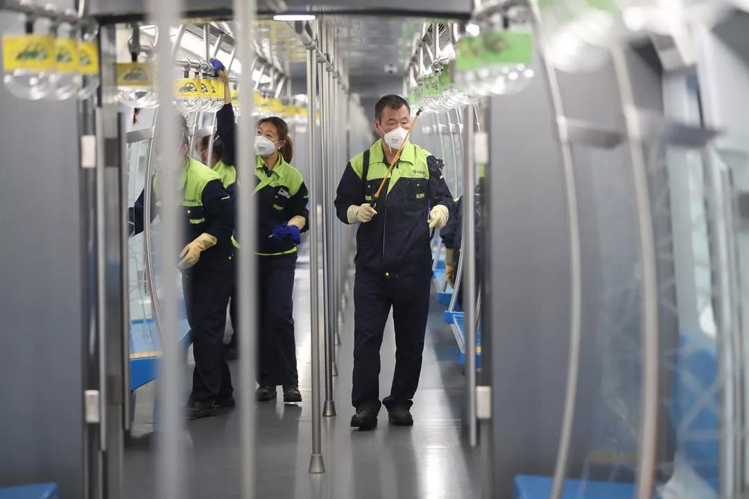 北京地鐵“無(wú)死角”消毒,全網(wǎng)車站測(cè)溫進(jìn)站,列車四次消毒方可出庫(kù)。
