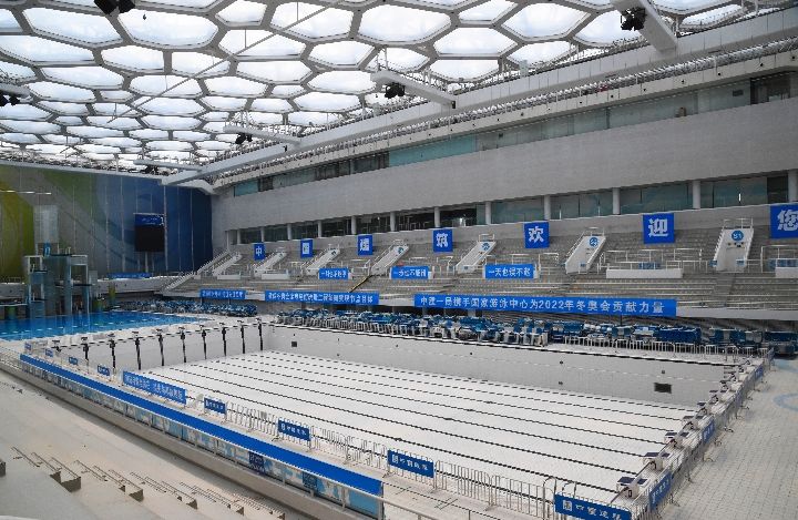 國(guó)家游泳中心“水立方”是2008年北京奧運(yùn)會(huì)的標(biāo)志性場(chǎng)館。為迎接北京冬奧會(huì),“水立方”在保留水上功能的基礎(chǔ)上新增冰上功能,通過(guò)搭建可轉(zhuǎn)換鋼結(jié)構(gòu),安裝可拆裝制冰系統(tǒng),變身為具有4條標(biāo)準(zhǔn)賽道的冰壺比賽場(chǎng)地。