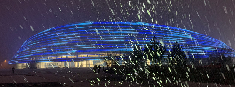 近日,國家速滑館場(chǎng)館啟動(dòng)了外立面泛光照明和場(chǎng)地照明調(diào)試,夜色中的“冰絲帶”晶瑩剔透、美輪美奐。