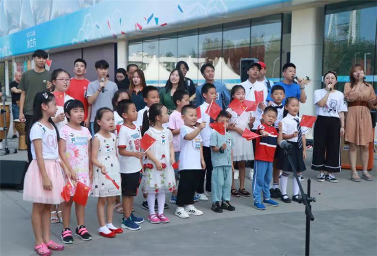 水立方、北京節(jié)奏貝貝現(xiàn)代音樂(lè)學(xué)校、現(xiàn)代音樂(lè)教育協(xié)會(huì)等單位近百余人在水立方北廣場(chǎng)相繼詠歌獻(xiàn)禮祖國(guó),《我和我的祖國(guó)》、《我愛(ài)你中國(guó)》、《北京歡迎你》、《夜空中最亮的星》、《中國(guó)》、《我和你》等耳熟能詳?shù)募t歌串燒,引來(lái)奧林匹克公園園區(qū)內(nèi)游客的圍觀(guān),更有深受感染的觀(guān)眾自發(fā)加入合唱隊(duì)伍中。
