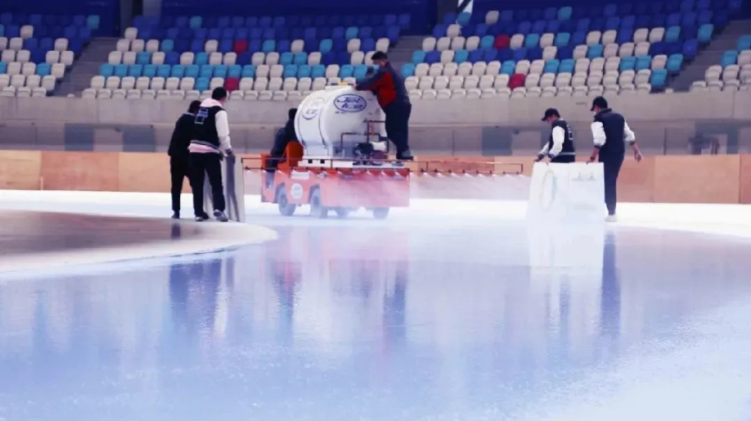 本次全冰面制冰工作于4月下旬啟動,對400米跑道內(nèi)的場芯和訓(xùn)練道部分進(jìn)行制冰。經(jīng)過制冰團(tuán)隊不懈努力,國家速滑館的全冰面初見全貌。值得一提的是,此次制冰作業(yè)由中方制冰師團(tuán)隊獨(dú)立完成。此前,這支中方制冰師團(tuán)隊與國際制冰專家深度協(xié)同合作,完成了“冰絲帶”首次制冰和測試活動的制冰作業(yè),并從中積累了豐富的經(jīng)驗。