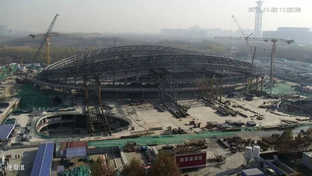 11月30日,國(guó)家速滑館馬鞍形屋面環(huán)桁架最后一根主弦桿吊裝到位,標(biāo)志著該工程屋面鋼結(jié)構(gòu)安裝全部完成。