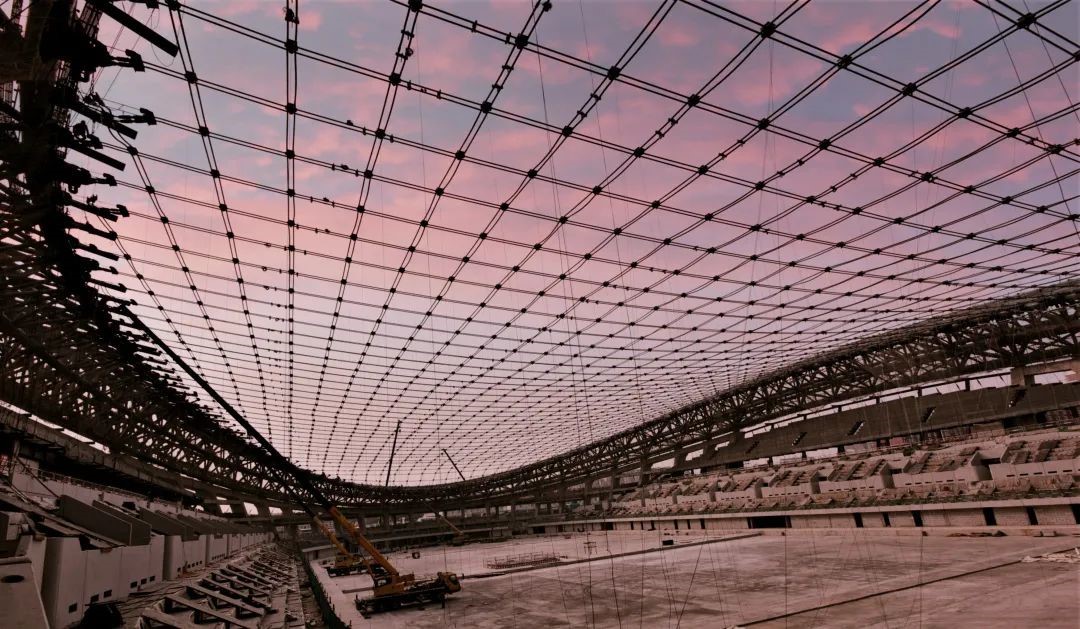 3月,國(guó)家速滑館屋頂索網(wǎng)“天幕編織”完成。