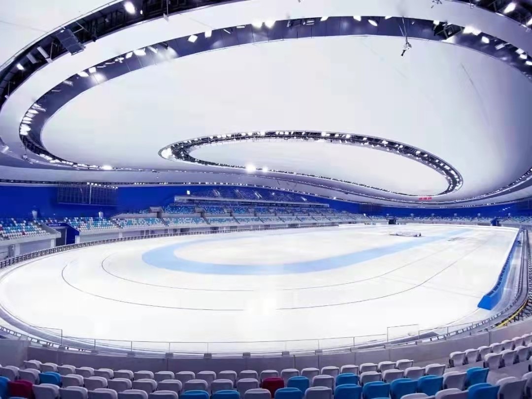 5月,國(guó)家速滑館開(kāi)展首次全冰面制冰,規(guī)模約1.2萬(wàn)平方米的場(chǎng)館全冰面成功亮相。