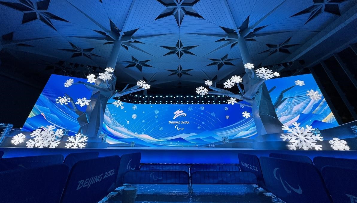 1月15日,延慶冬殘奧頒獎(jiǎng)廣場(chǎng)舞臺(tái)正式亮相。