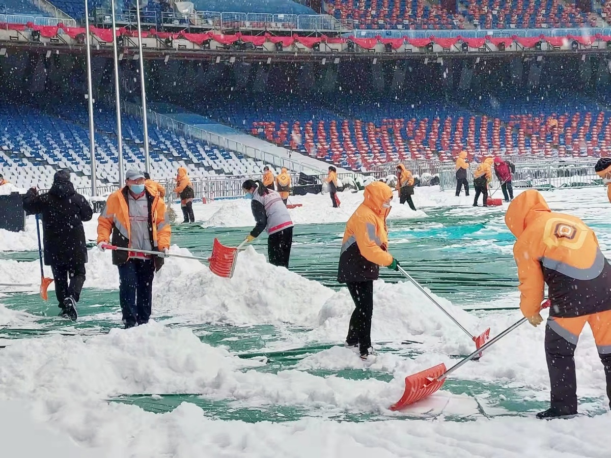 同時(shí),國(guó)家體育場(chǎng)根據(jù)要求嚴(yán)格區(qū)分閉環(huán)內(nèi)外廢棄物,對(duì)閉環(huán)內(nèi)垃圾進(jìn)行裝袋封箱。彩排和轉(zhuǎn)場(chǎng)期間,北京遇到多次雨雪冰凍天氣,“鳥巢”服務(wù)保障團(tuán)隊(duì)提前部署、及時(shí)應(yīng)對(duì),連夜投入清廢作業(yè)人員和掃雪融雪車輛,有效實(shí)現(xiàn)場(chǎng)館通行道路順暢和中心場(chǎng)地舞臺(tái)安全,確保閉幕式彩排演練順利進(jìn)行。