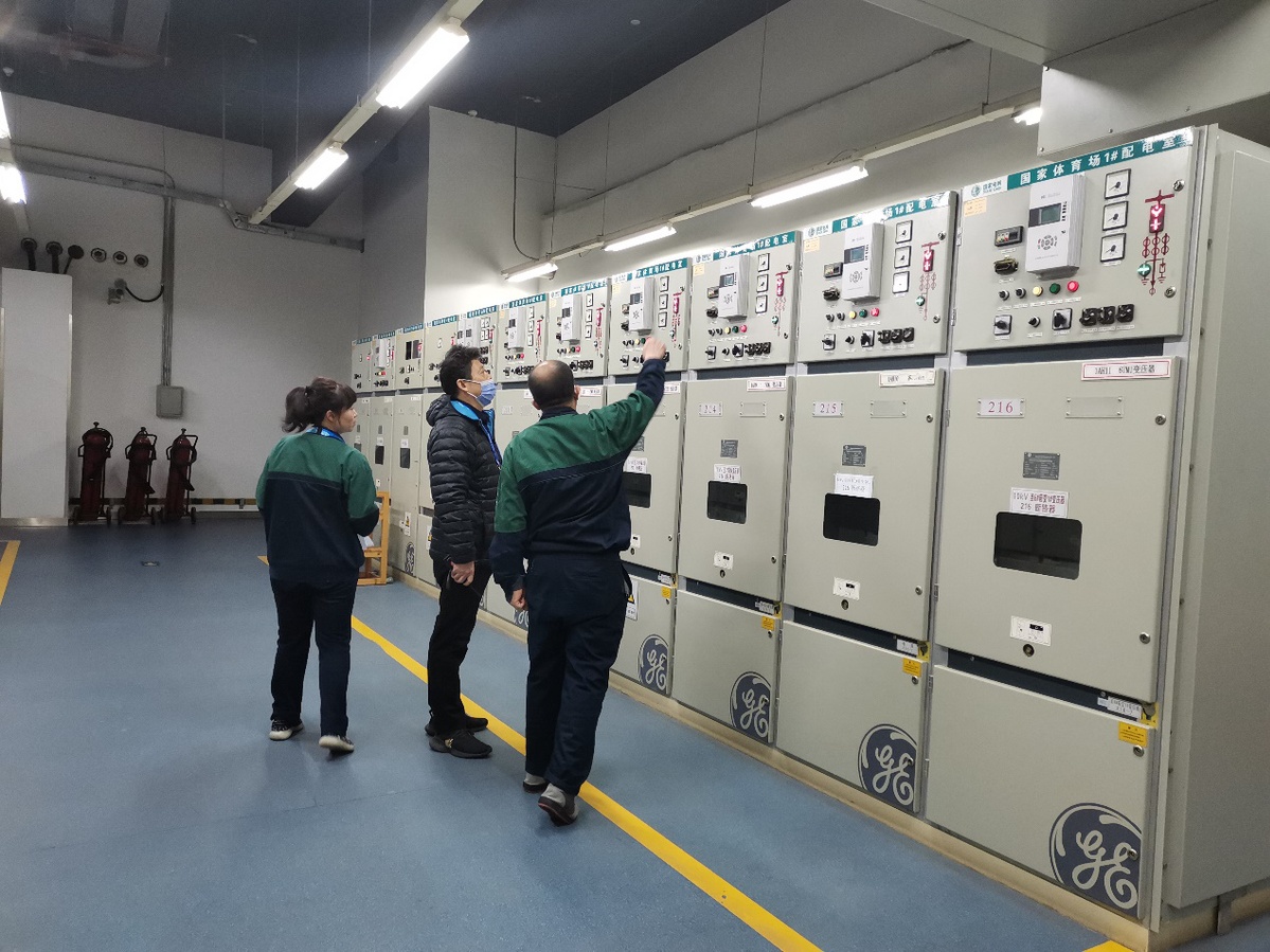 期間,服務(wù)保障團(tuán)隊(duì)對(duì)景觀照明、南北大屏、配電室等永久設(shè)施進(jìn)行不間斷巡視,從場(chǎng)館鋼結(jié)構(gòu)屋頂?shù)搅銓友萋毴藛T集結(jié)區(qū),從包廂區(qū)到觀眾席,從5G電源點(diǎn)到各大通訊社遙控相機(jī)的安裝位置,隨時(shí)隨處都可見他們忙碌的身影。