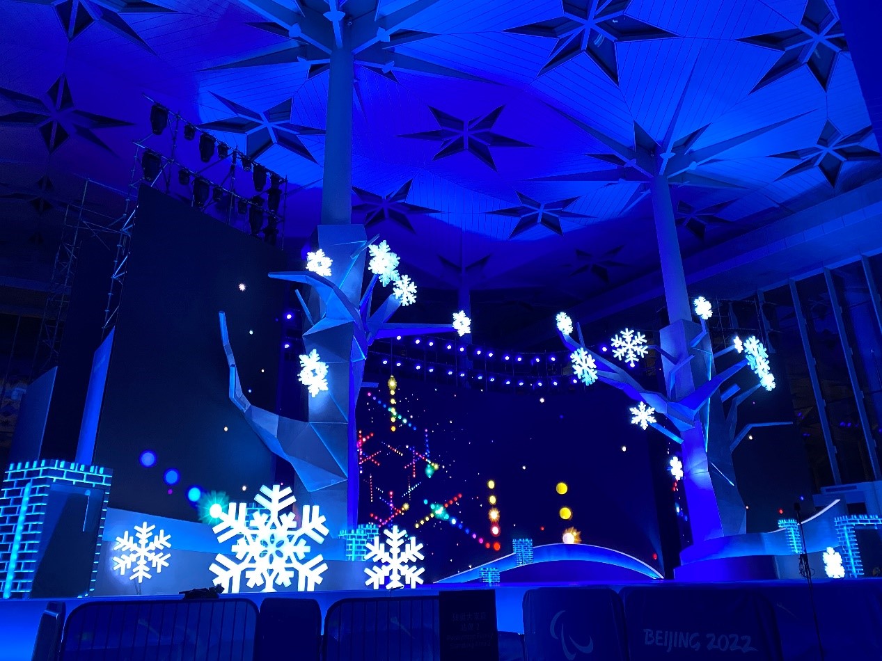 頒獎(jiǎng)儀式面向全球呈現(xiàn)冬殘奧會運(yùn)動(dòng)員的高光時(shí)刻,不僅肩負(fù)著傳播奧林匹克精神和殘奧價(jià)值觀的重任,同時(shí)也向世界展示中國文化底蘊(yùn)和社會文明程度。冬殘奧會在沿用張家口頒獎(jiǎng)廣場舞臺“激情逐夢”的基礎(chǔ)上,將啟用延慶冬殘奧頒獎(jiǎng)廣場舞臺“生命之樹”與之呼應(yīng),以致敬殘疾人運(yùn)動(dòng)員生生不息、頑強(qiáng)拼搏的精神。