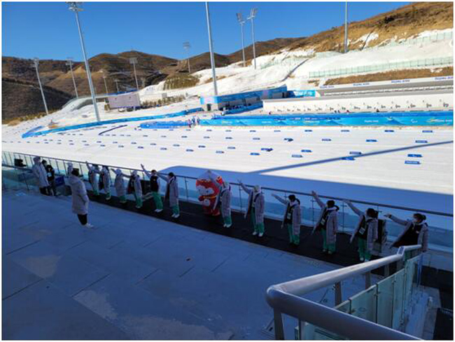經(jīng)過1個(gè)多月的艱苦訓(xùn)練,這些孩子成功完成了既定的表演節(jié)目,有力保障了冬殘奧會(huì)體育展示工作順利進(jìn)行。賽時(shí),這些聽障孩子每天提前30分鐘備場(chǎng),每天要完成兩場(chǎng)演出。他們的精彩演出不僅營(yíng)造了熱烈的現(xiàn)場(chǎng)氛圍,也傳遞著殘健融合、守望相助、一起向未來的美好愿望。