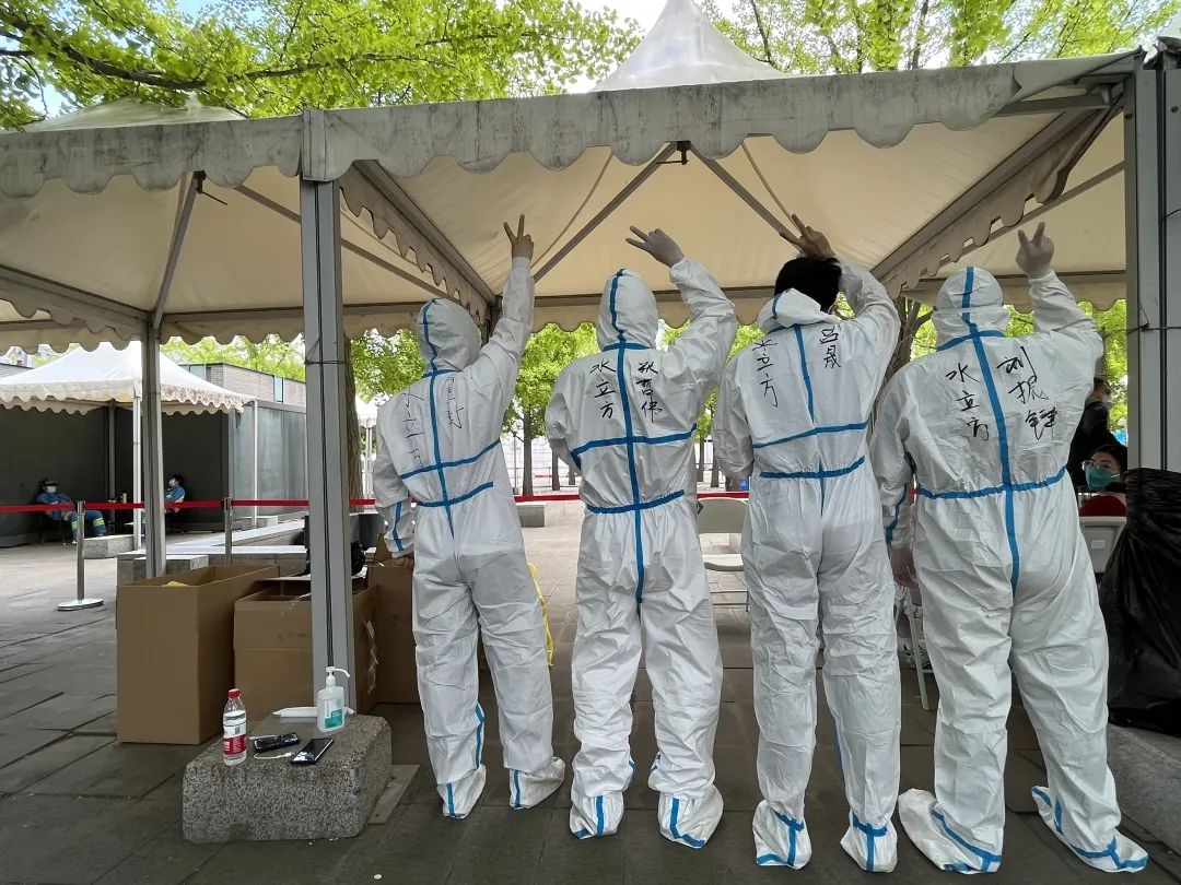 再擔(dān)保下沉干部在成壽寺社區(qū)協(xié)助核酸檢測工作