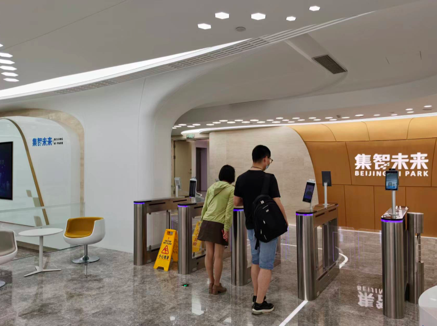 園區(qū)辦公樓內(nèi),設(shè)有人臉識別閘機系統(tǒng),3到5秒鐘便可識別人員身份、查驗人員健康寶信息、實時測溫,完成疫情防控常態(tài)化下的進樓“三步走”。本月園區(qū)還會將核酸檢測陰性證明信息納入通行系統(tǒng)中,從而實現(xiàn)四位一體檢測檢驗。