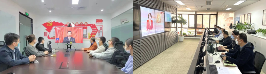 國家速滑館黨委組織各黨支部和全體黨員以線上線下相結(jié)合的形式收看了大會(huì)盛況。同時(shí),組織當(dāng)日在班員工、各運(yùn)維方集中在公司會(huì)議室共同收看學(xué)習(xí)。