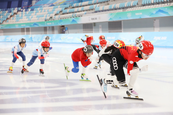 青少年在國(guó)家速滑館練習(xí)滑冰。 北京國(guó)資公司供圖