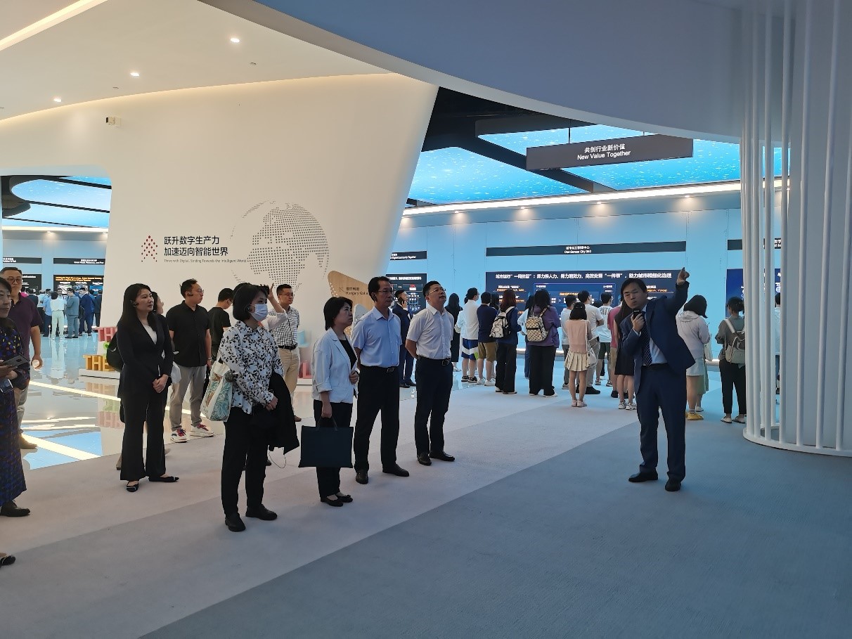 本次培訓(xùn)為參訪式交流學(xué)習(xí),參訓(xùn)學(xué)員走進(jìn)華為北京會展中心,在展廳參觀了解華為的企業(yè)理念、核心價值觀、全球戰(zhàn)略部署、服務(wù)各行業(yè)的解決方案,以及華為人工智能和盤古大模型等前沿科研進(jìn)展,重點了解華為在智慧場館、產(chǎn)業(yè)園區(qū)數(shù)字化建設(shè)和運(yùn)營方面的解決方案和助力中小企業(yè)數(shù)字化轉(zhuǎn)型的相關(guān)情況。