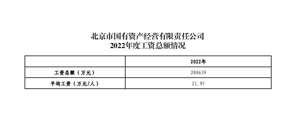 北京市國有資產(chǎn)經(jīng)營有限責任公司2022年度工資總額情況