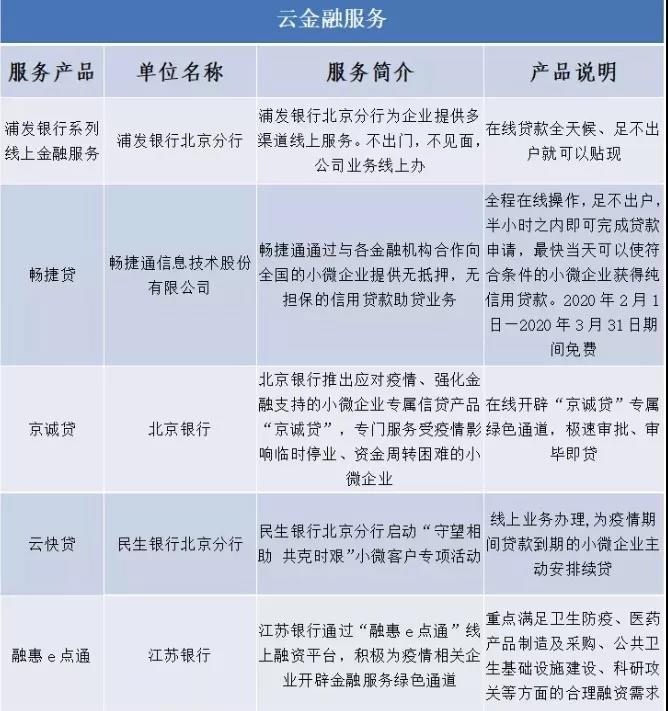 北工投資運(yùn)營(yíng)管理的北京市中小企業(yè)公共服務(wù)平臺(tái),積極發(fā)動(dòng)各服務(wù)機(jī)構(gòu)打造云服務(wù)包,為中小企業(yè)打包提供互聯(lián)網(wǎng)、移動(dòng)辦公、金融、專業(yè)服務(wù)等服務(wù)產(chǎn)品。據(jù)了解,云服務(wù)產(chǎn)品在疫情期間免費(fèi)提供使用,且最長(zhǎng)免費(fèi)時(shí)限至疫情結(jié)束后90天,為廣大中小企業(yè)減輕因疫情而帶來的短期經(jīng)營(yíng)壓力。